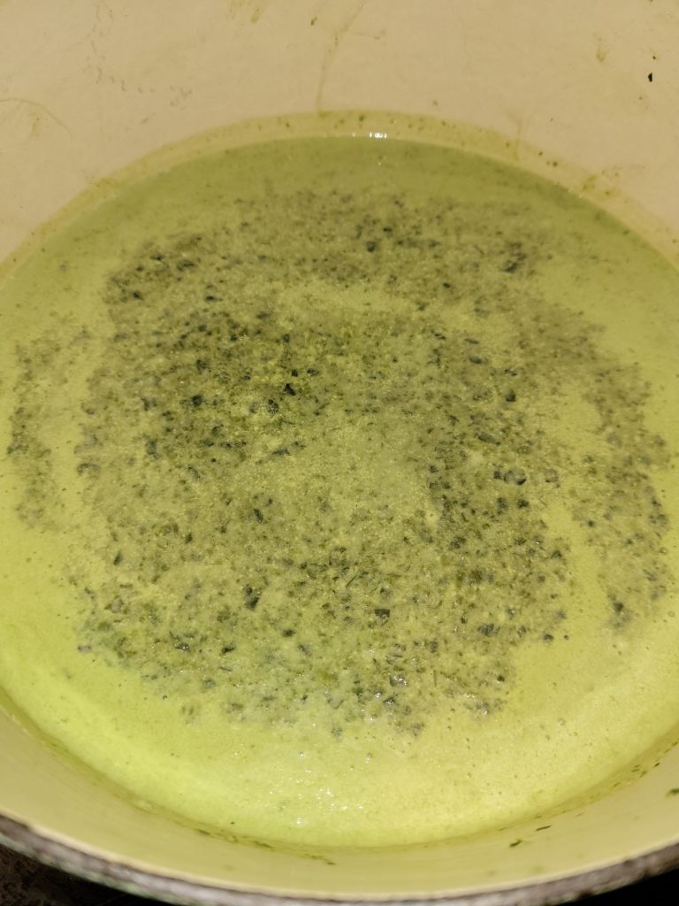 I suppa har eg brukt både grønkål og svartkål, i tillegg til løk og seterrømme. Og god kraft/buljong. Suppa er rask og lage, og egnar seg difor godt til ein kvardagsmiddag der tida er litt knapp. Ein kan godt nyte brød eller rundstykke til, men personleg synst eg suppa mettar så godt at eg ikkje treng det.