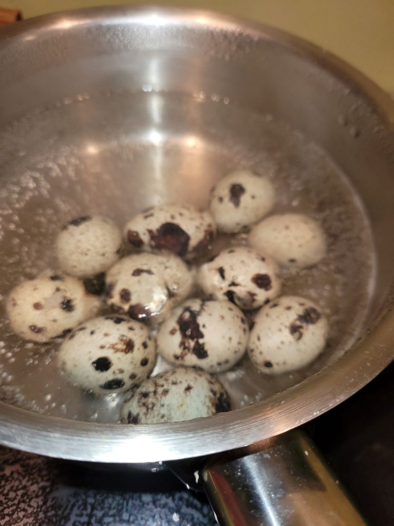 Vaktelegga har eg kokt i 3 min, då er dei hardkokt. Om ein ynskjer ein meir smilande plomme, kan koketida reduserast til omlag 2,5 min.